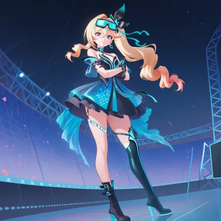 Hi3Pack05, Fol002, Anv_Dudu, bianka durandal ataegina, 작은 가슴, 작은 체형, 금발 머리, 옆 머리 꼬리, 고글, 머리 위 고글, 머리 위 안경, 청록색 나비, 머리 리본, 헬러넥, 청록색 칼라, 이색 코르셋, 검은 코르셋, 청록색 코르셋, 검은 스커트, 주름 스커트, 높은 허리 스커트, 청록색 테두리, 어깨 노출 재킷, 청록색 재킷, 짧은 재킷, 투명한 재킷, 단일 손목 커프, 검은 주름 손목 커프, 검은 단일 반장갑, 단일 걸이 끈, 청록색 허벅지 끈, 불균형 신발, 비대칭 신발, 청록색 단일 허벅지 부츠, 검은 단일 부츠,