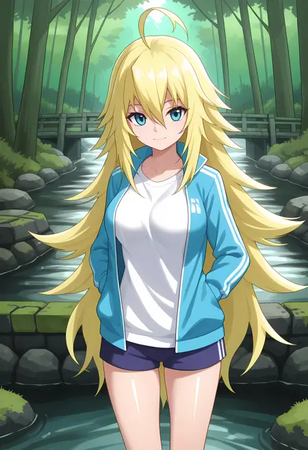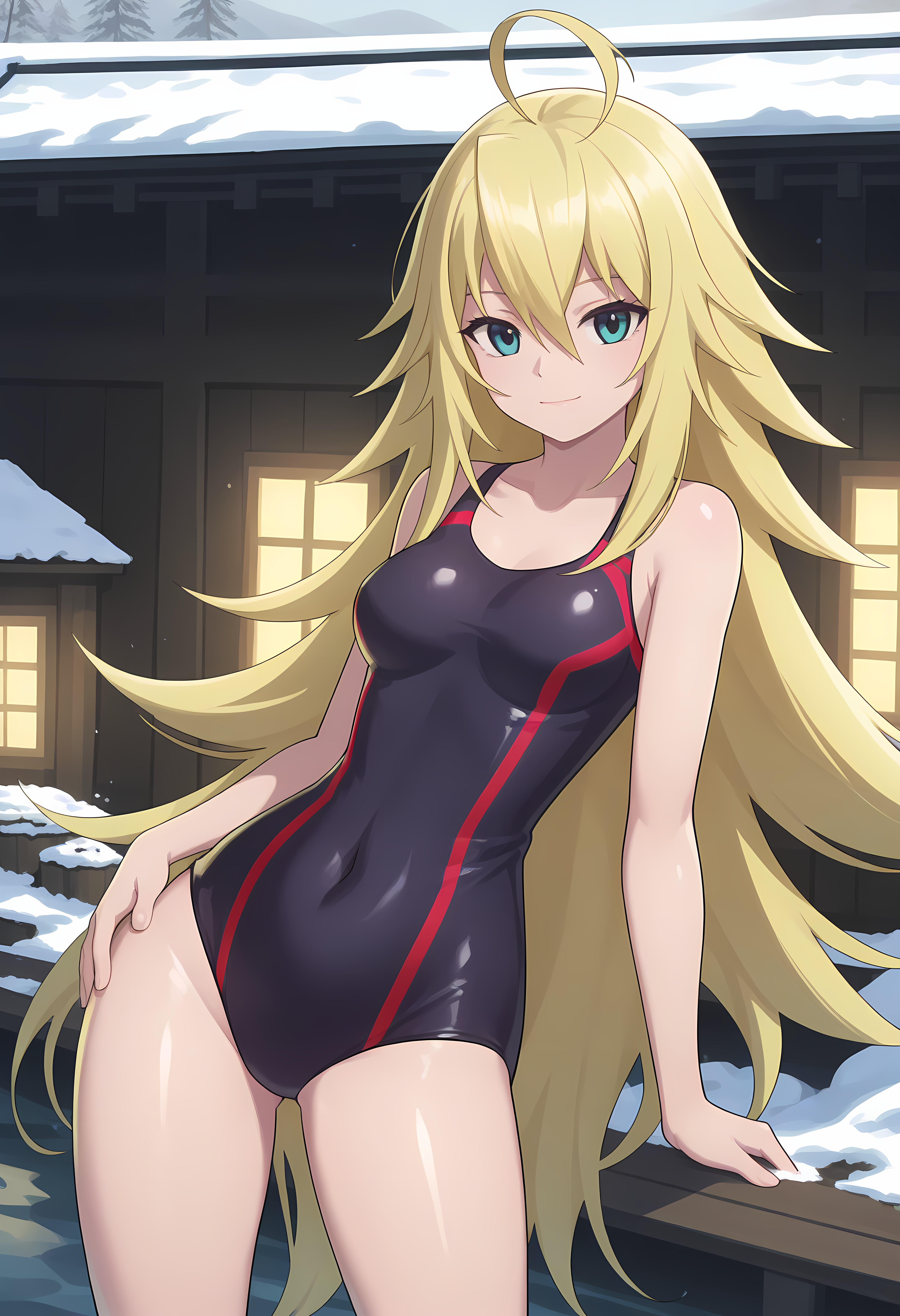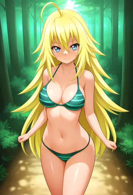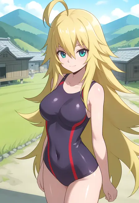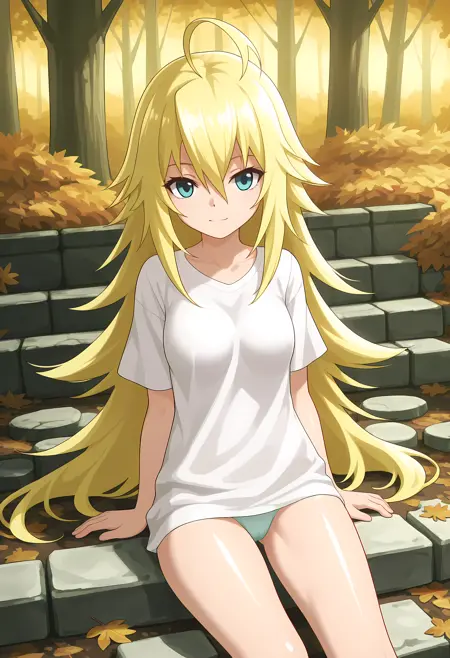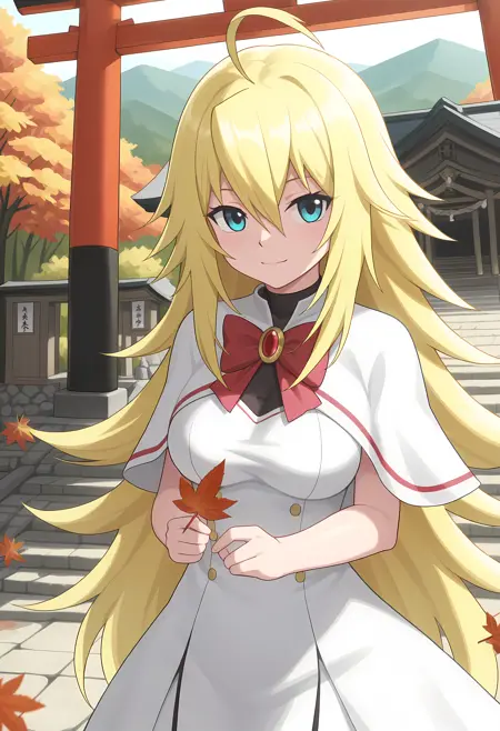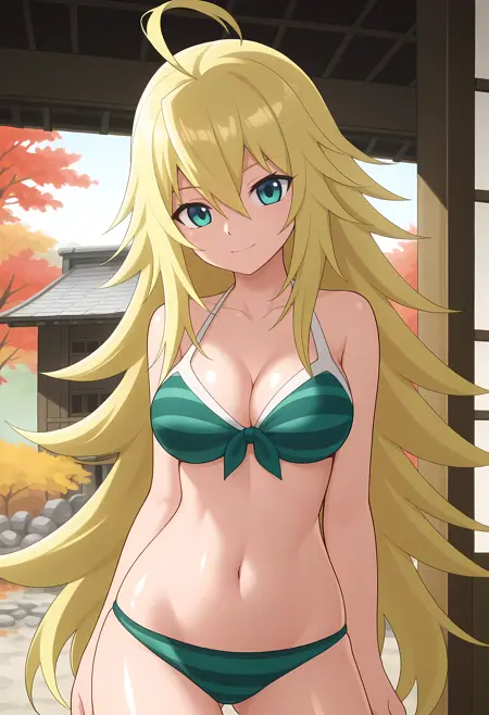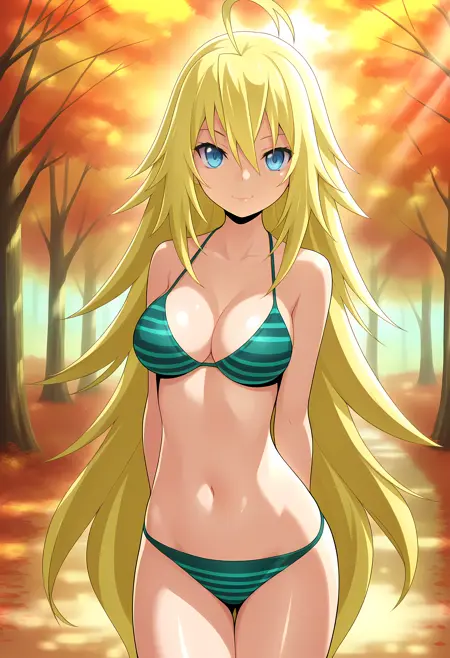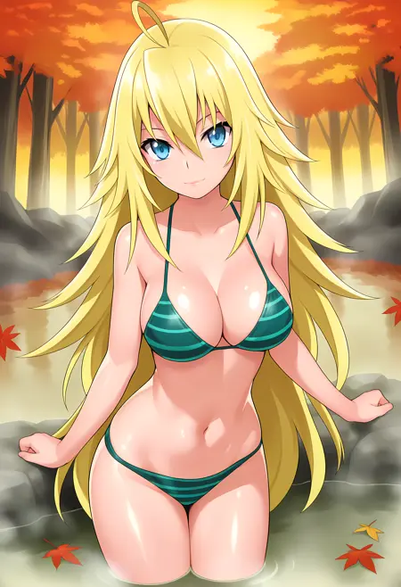 외모 → ohwx, blonde_hair, long_hair, 1girl, breasts, ahoge, blue_eyes, large_breasts, hair_between_eyes, very_long_hair,