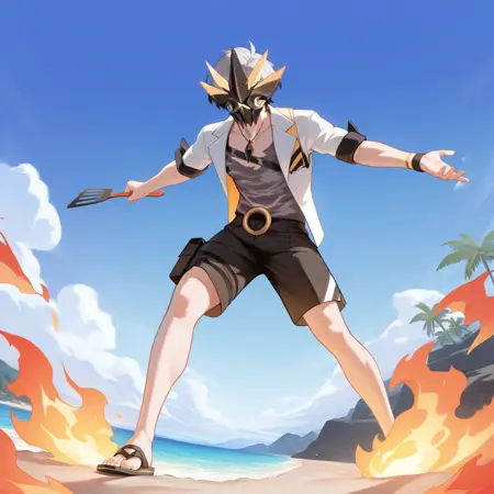 참고: 나는 그의 아름다운 마스크에 오이를 사용해보려 했지만, 그에 대한 태그는 매우 특수하여 AI가 마스크 개념이 포함된 다른 4가지 복장과 함께 이해하기 어렵습니다. 따라서 그냥 일반적인 Kalpas의 마스크로 충분합니다.