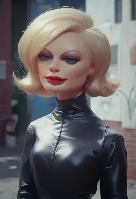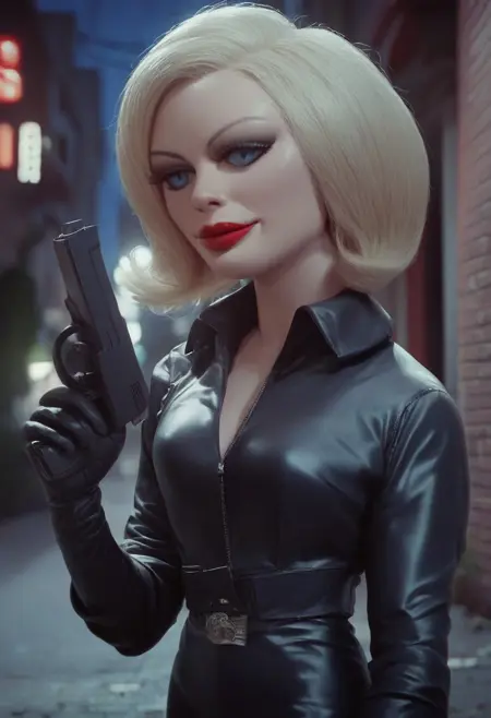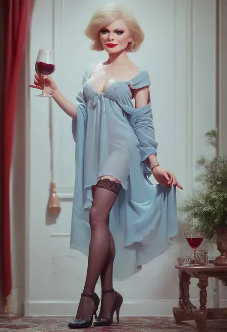 タグ: "Lady_PCW, ブロンドの髪, 青い目, 短髪, 化粧, ジュエリー" 強度: 0.8
