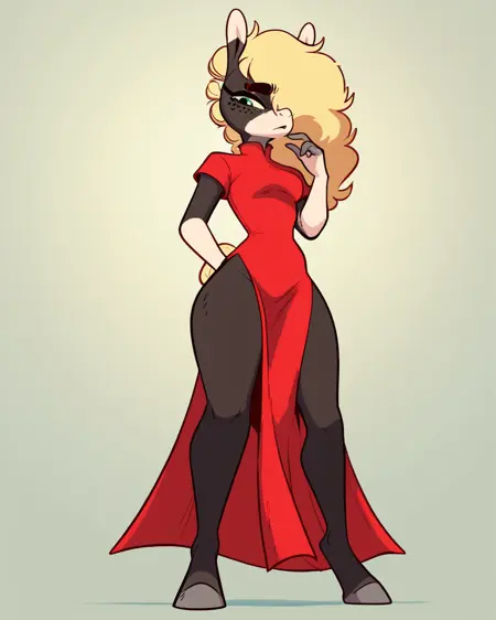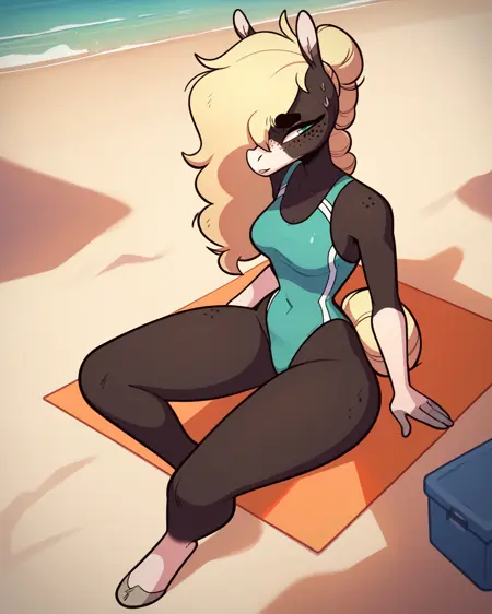 推奨プロンプト: ファリー、馬娘、片目を覆う髪、長い髪、そばかす、金髪