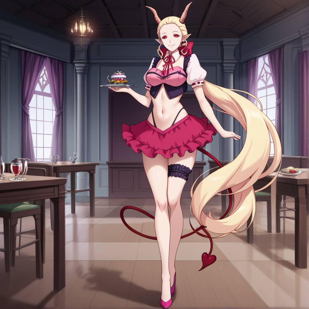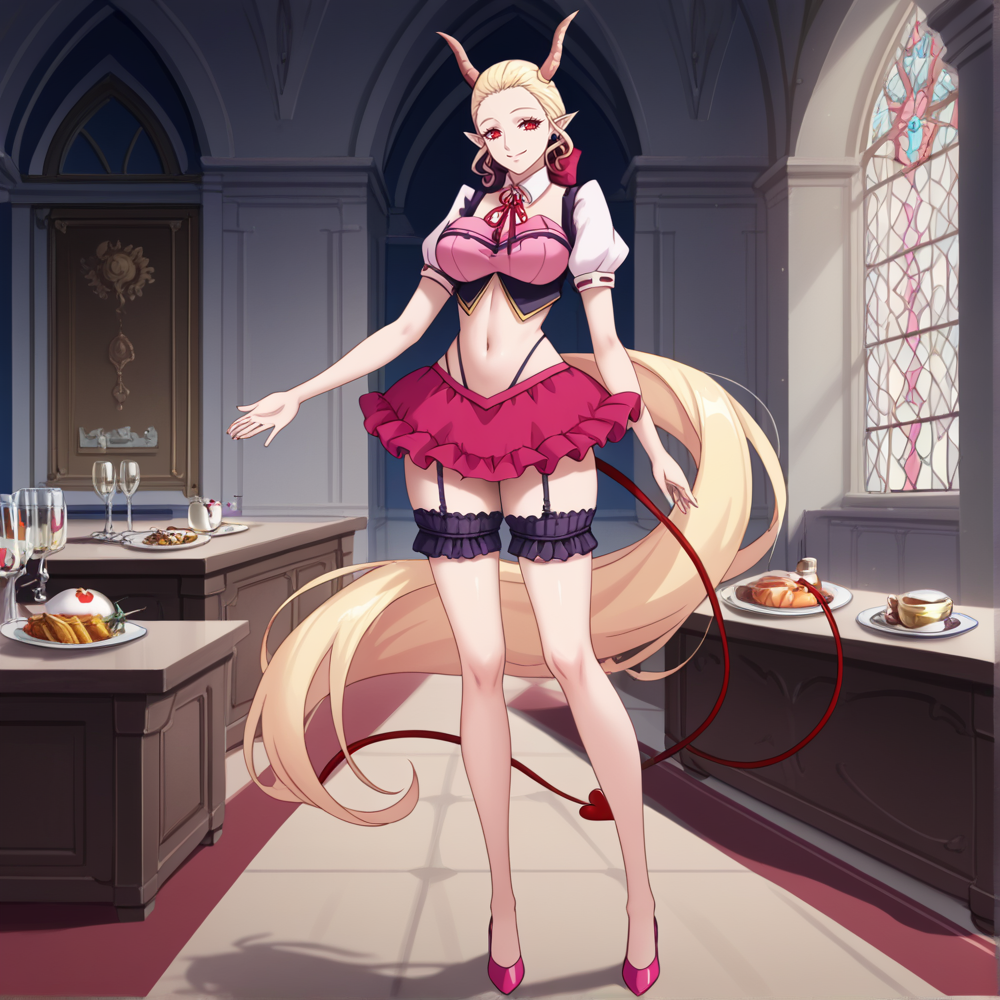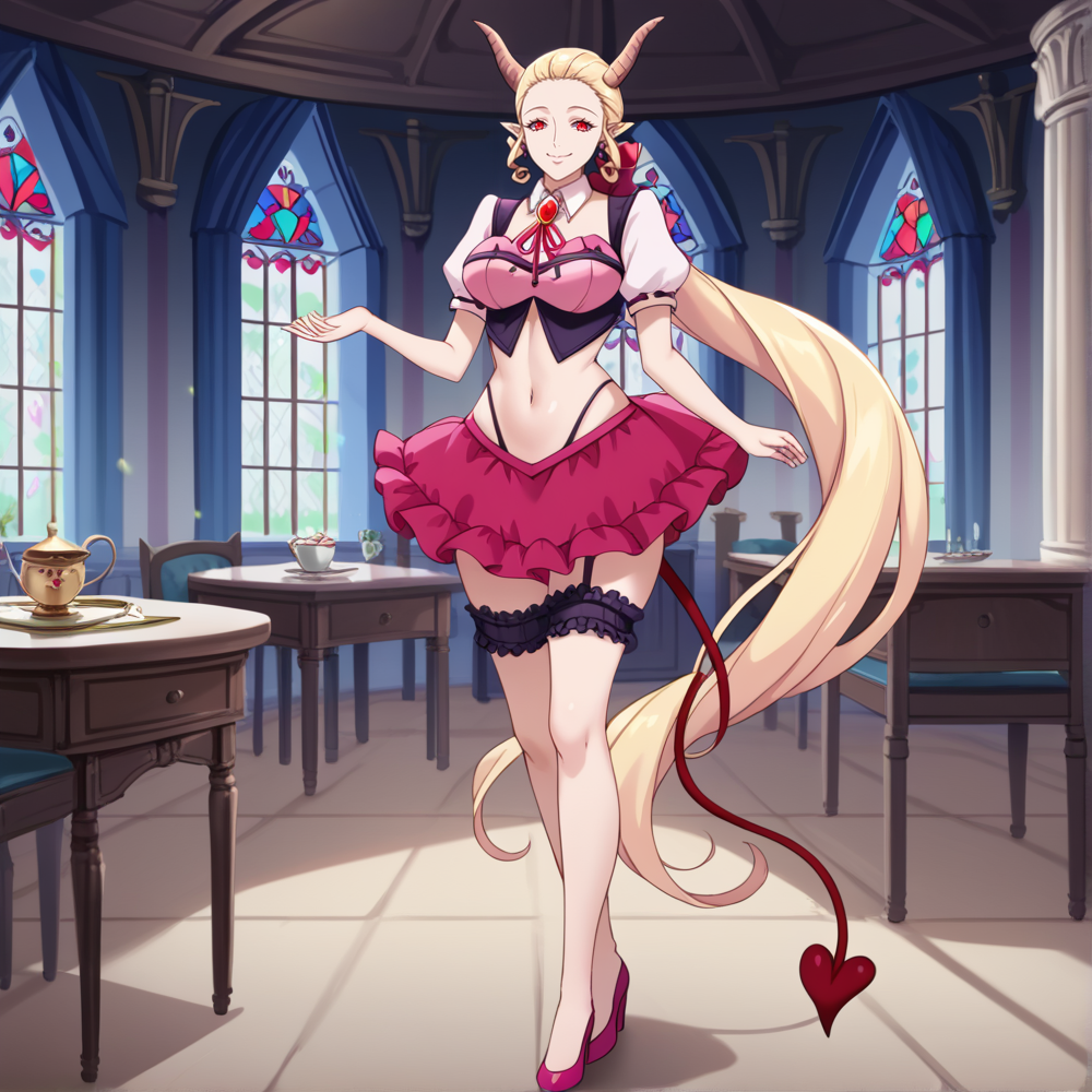 『魔入りました!入間くん』のエリザベッタ・イクスを生成します。彼女のガーターはかなり不安定で、プロンプトを無視します。
