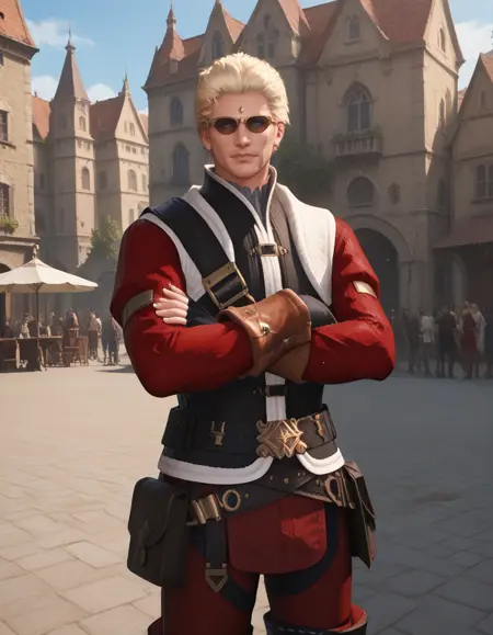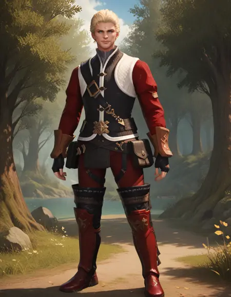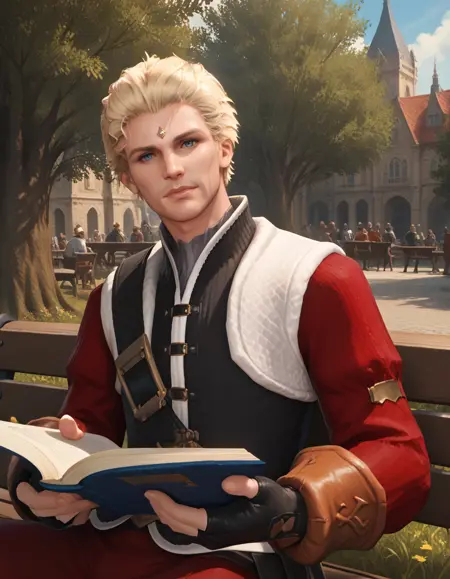 ffxiv_nero, 1boy, blue eyes, third eye, blonde hair, stubble