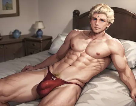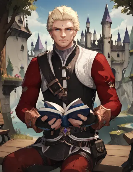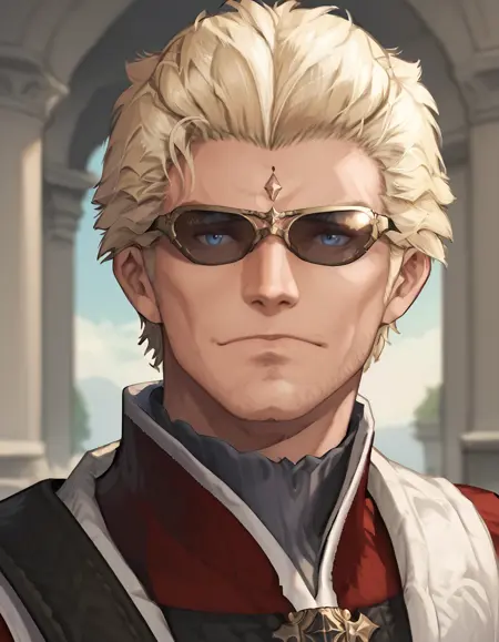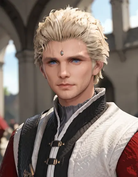 ffxiv_nero, 1boy, blue eyes, third eye, blonde hair, stubble