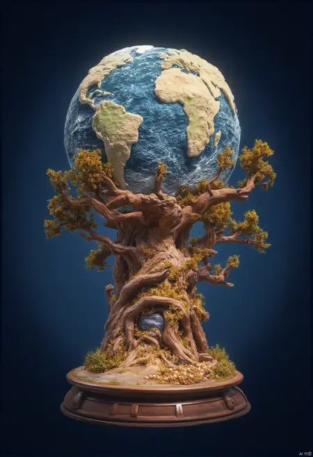 - 推奨:カップの中の世界、目線レベルで捉えた、小さな陶製のマグカップが水の上に置かれています。マグカップには小さな滝が飾られています。