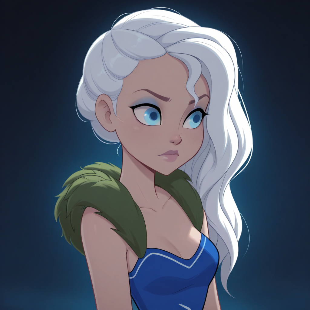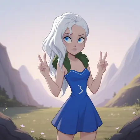 Artemis, 1girl, solo, white hair, blue eyes, side hair,