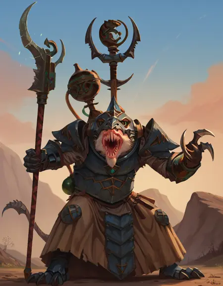 "최고 마법사 이킷 클로는 스카이어 부족의 과학과 마법을 혼합한 기술을 완전히 새로운 차원으로 끌어올렸다. 그는 한 실험의 실패로 폭발을 겪기 전까지 키가 크고 흰 털을 가진 존재였지만, 이제는 자신의 발명품인 복잡한 철제 마스크가 탈모된 두개골을 가리고, 정교하게 제작된 외골격이 마비된 왼쪽 신체를 돕고 있다. 이 철제 장치는 워프 발전기로 작동하며, 이는 마법의 바람을 흡수하여 이킷의 악랄한 발명품에 전력을 공급하는 공학의 걸작이다.
