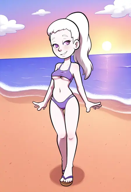 - Lulu_Storybooth, 白化, 马尾辫, 紫色眼睛, 1girl,