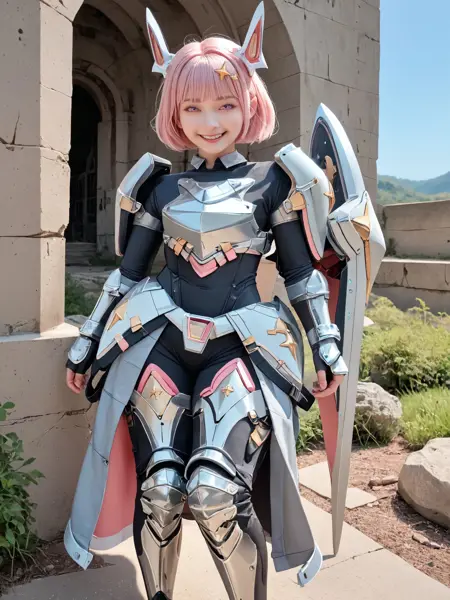 armor, shoulder armor, breastplate, armored gloves, armored bodysuit, armored boots, pauldrons, shield, hip armor, leg armor, armored skirt