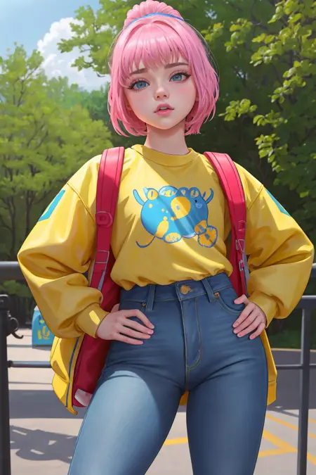 如果你需要一个稳定的角色,但又不想用知名名人,艾琳就是你的不二之选。艾琳偏好作为青少年至年轻成年人(取决于模型),留着短至中长、带刘海的彩色头发。她拥有大而宽距的眼睛、可爱的鼻子和嘴唇。她个性自由奔放,所以请随意给她搭配任何你想让她穿的衣服。