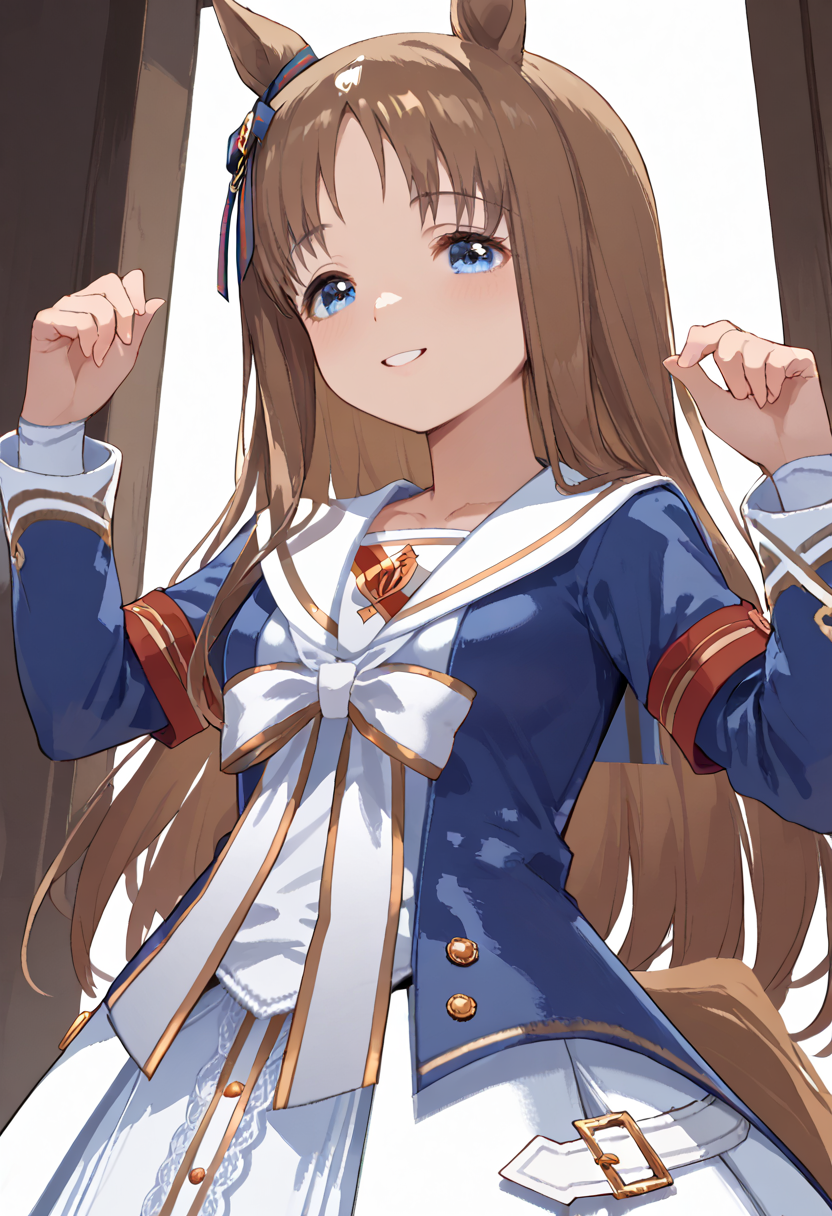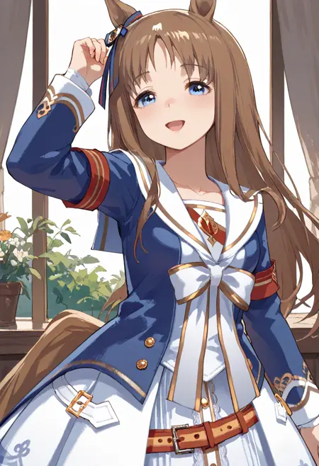 umagw,horse ears, horse tail, blue eyes, hair bow, long hair, brown hair