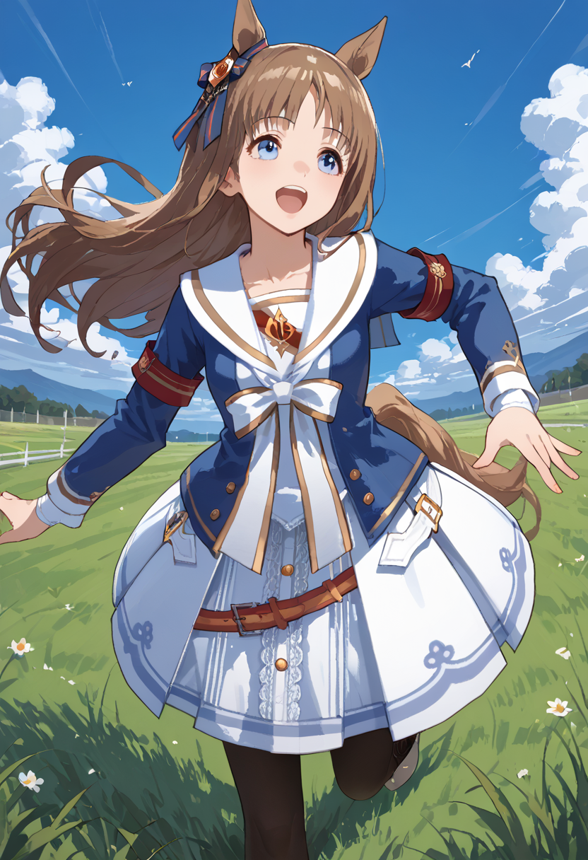 umagw,horse ears, horse tail, blue eyes, hair bow, long hair, brown hair