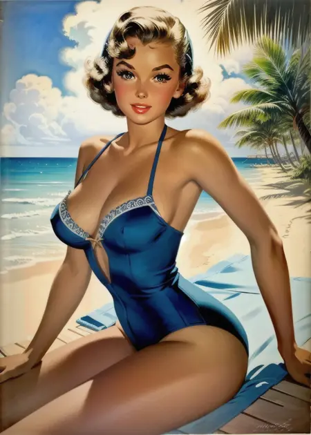 Jon Whitcomb (1906–1988) was an American illustrator. He was well known for his pictures of glamorous young women. He was born in Weatherford, Oklahoma and grew up in Manitowoc, Wisconsin. He attended Ohio Wesleyan University and graduated from Ohio State University with a major in English. He is the brother of fashion designer and inventor Merry Hull.