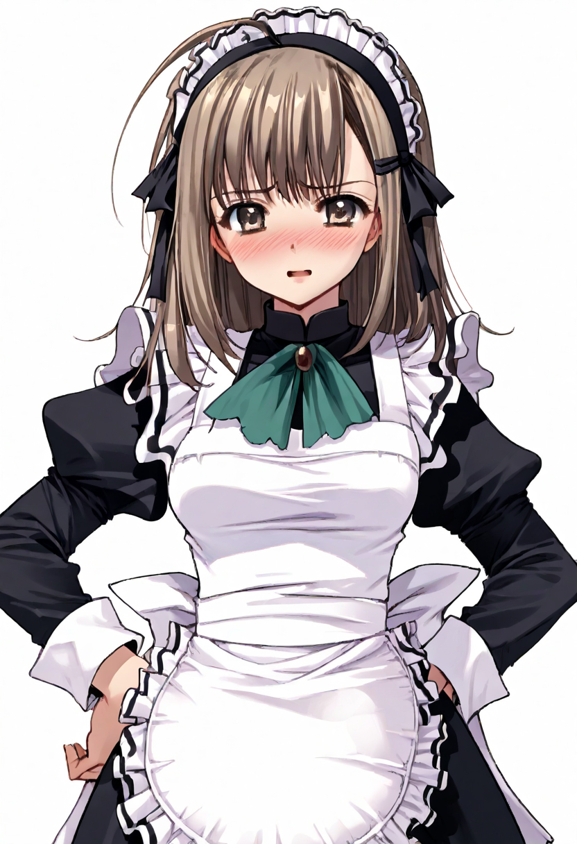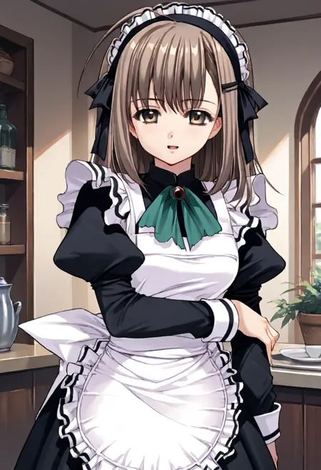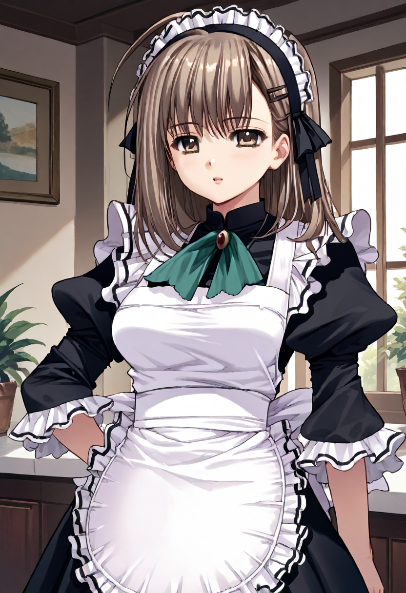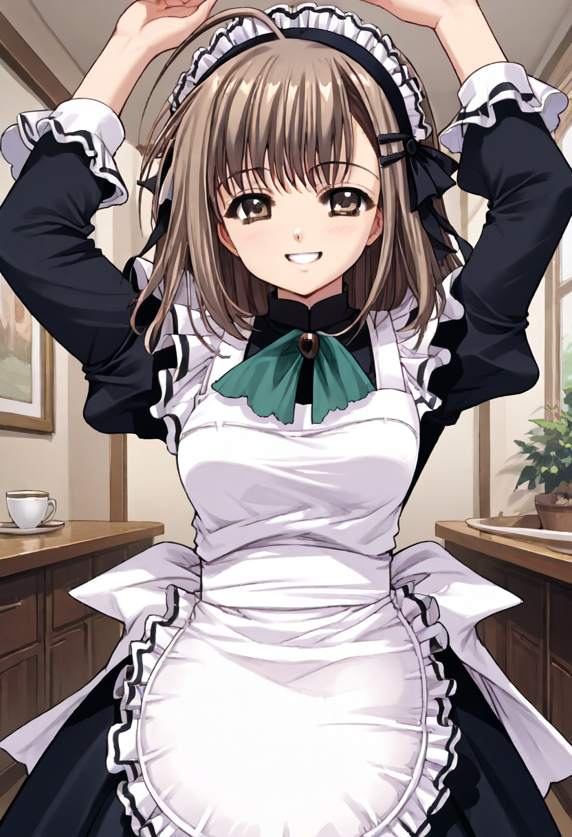 tamahiyo, brown eyes, brown hair, hairclip, ahoge