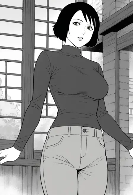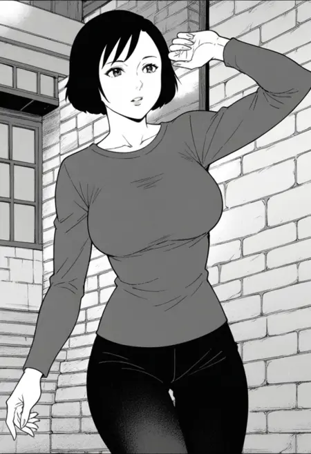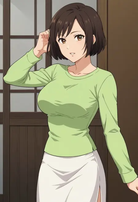 ベース:oggawara、1人女の子、短い髪、茶色の髪、ボブカット、茶色の目、黒髪、茶色の髪、