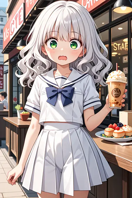 瞳を小さくして、大きく見開いた驚いた目を再現します。プロンプトだけでは得られないほどの効果を発揮します。