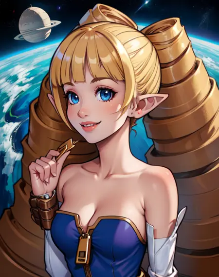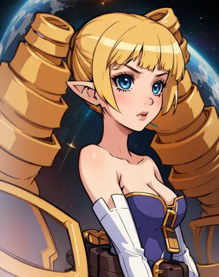 Archer,蓝色眼睛,金色头发,刘海,双钻式发辫,尖耳,
