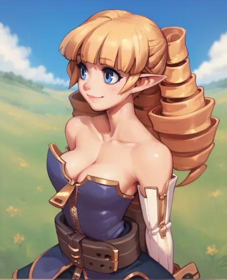 Archer,蓝色眼睛,金色头发,刘海,双钻式发辫,尖耳,
