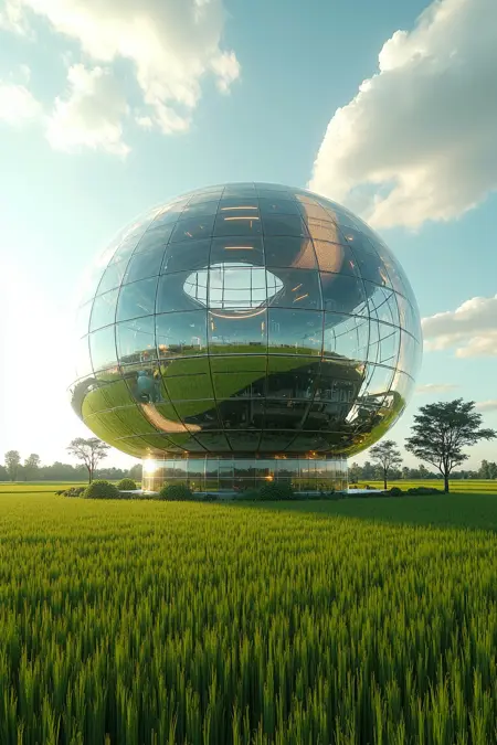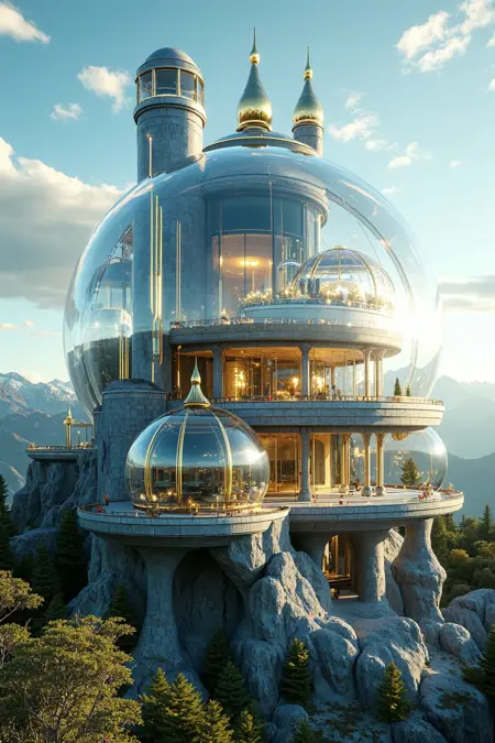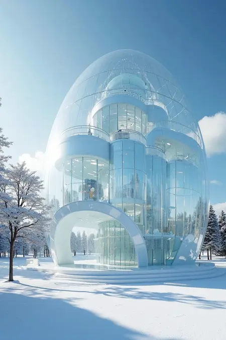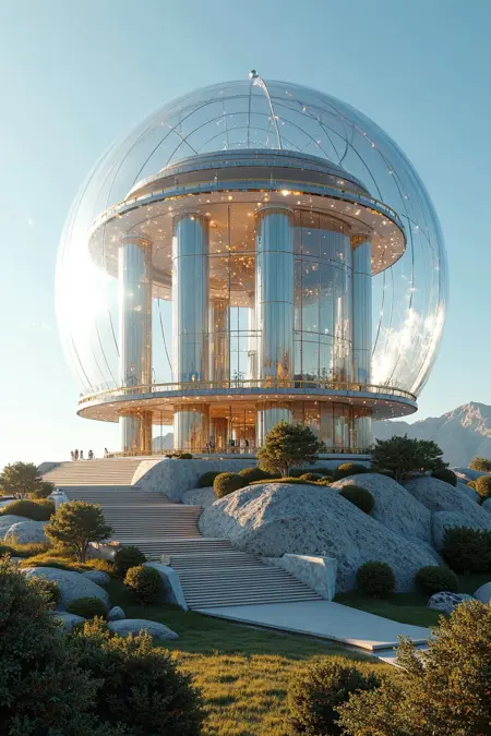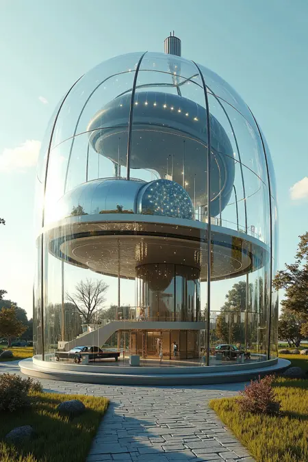 유리로 만든 구형 복합 건물을 생성하는 LoRA입니다!