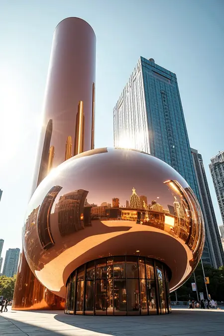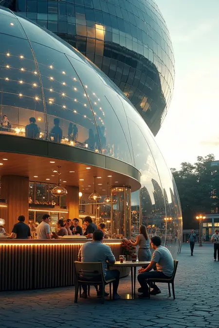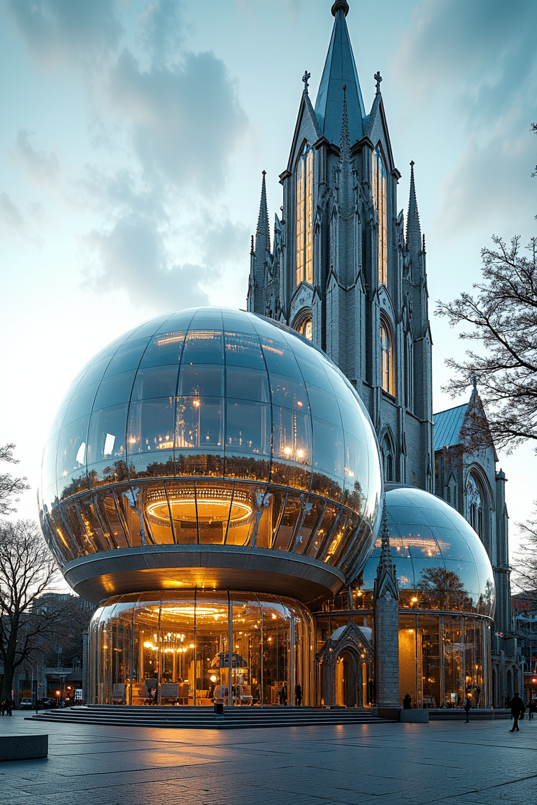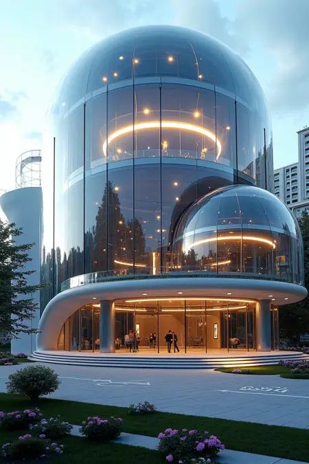 개별 건물에 구형 유리 볼 외관을 설치하거나 적용할 수 있습니다!(장면 아님)