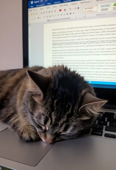 Allie 是一只 10 岁、重 10 磅的毛茸茸疯猫。我大约在她 1 岁时收养了她,从此她一直是我可爱的毛茸茸伙伴——无论何时进行视频通话或处理重要事务,她总喜欢凑在旁边,尽管她根本不需要参与。以下是几张非 AI 的实拍照片供参考: