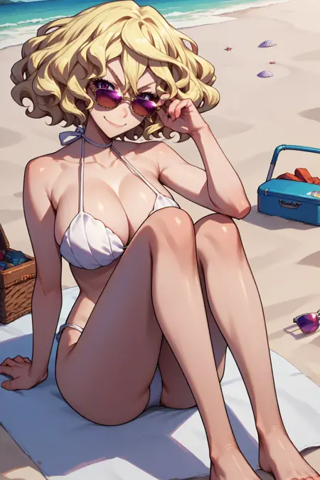 Trigger word is "mski" and "blonde hair, short hair, wavy hair, purple eyes" is required.