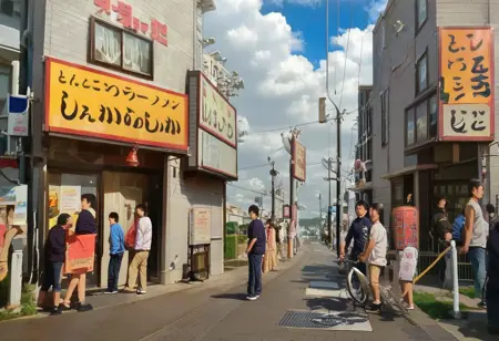이 LoRA는 타카라즈카에 있는 유명한 호카이도 라멘 가게처럼 보이는 풍경을 그려낼 수 있을지도 모릅니다. 완전한 재현은 불가능하지만, 가본 적 있는 사람이라면 알 수 있을 만한 미묘한 분위기를 표현할 수 있습니다. https://maps.app.goo.gl/EFQJgoLYdHfN34cdA