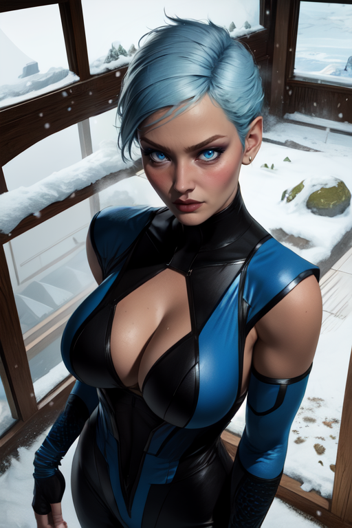 Frost, 파란색 머리카락, 파란색 눈 또는 회색 눈,