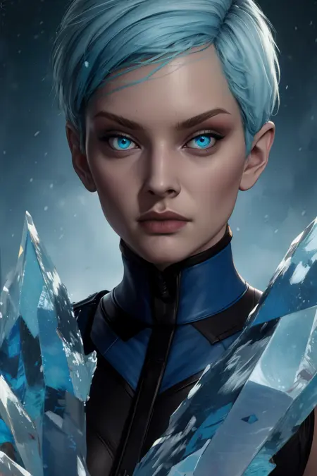 Frost, blue hair, blue eyes, or grey eyes,