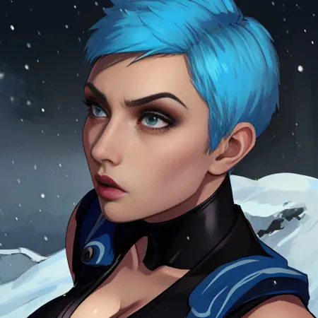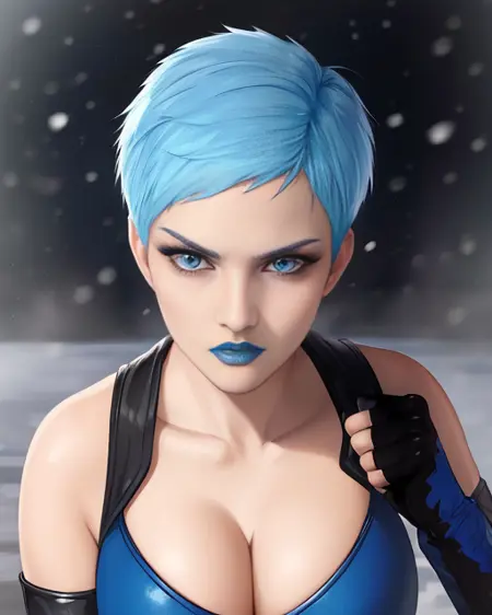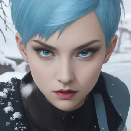 Frost, blue hair, blue eyes, or grey eyes,