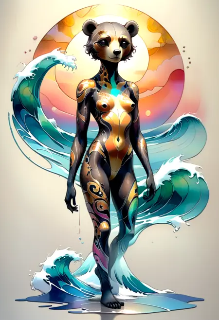 ANIMIST를 소개합니다. 이 새로운 LoRA는 동물-인간 하이브리드 캐릭터를 생생하게 구현하며, 알코올 잉크, 수채화, 스케치 스타일의 세밀한 요소를 결합한 독특한 시각적 경험을 제공합니다. ANIMIST의 영감은 위에 공유된 이미지들에서 볼 수 있듯, 동물의 자유롭고 감정이 풍부한 본질과 인간적인 감성의 조화를 추구한 것입니다. 화려한 색채가 뿌려진 우아한 고양이 캐릭터부터 유동적인 붓터치로 살아난 수중 파충류 인물에 이르기까지, ANIMIST는 창작자들에게 독창적이고 유연한 캐릭터 디자인 탐색의 기회를 제공합니다.