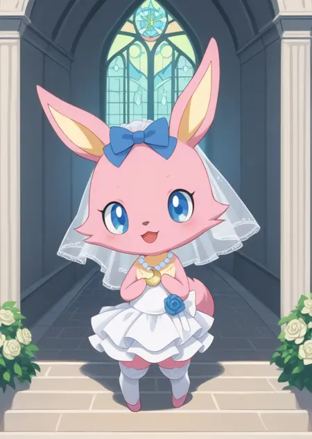프롬프트: lunajp, 토끼, 야생적, 파란 눈, 목걸이, 퓨리, 노란 가슴 털, 머리 장식