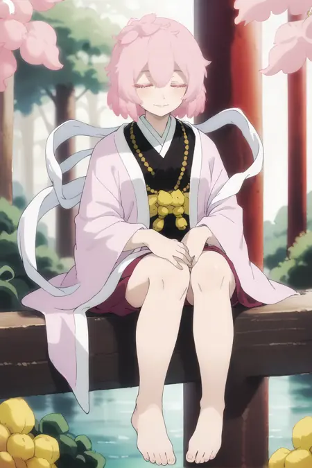 tao fa地獄楽,Hagoromo,kimono,yellow eyes,shawl,pink hair,