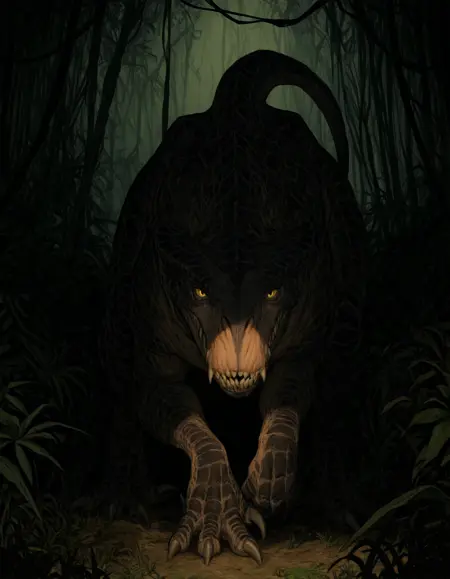 多くの者によって究極のジャングルハンターと見なされ、中には2階分にも及ぶほどの高さに成長するものもいる。これらの巨大な爬虫類の怪物は、力強く、攻撃的で、長く筋肉質な後脚と、大きく強力な頭部のバランスをとるために用いられる重い尾を備えている。獲物の匂いを嗅ぎつけるか、わずかな動きでも目撃すると、カルノサウルスは驚異的な速さで大きな strides で突進し、その巨大な体躯とは思えないほどのスピードで移動する。