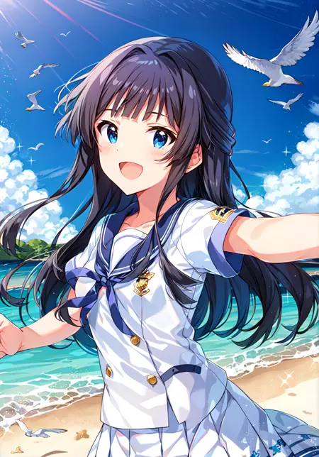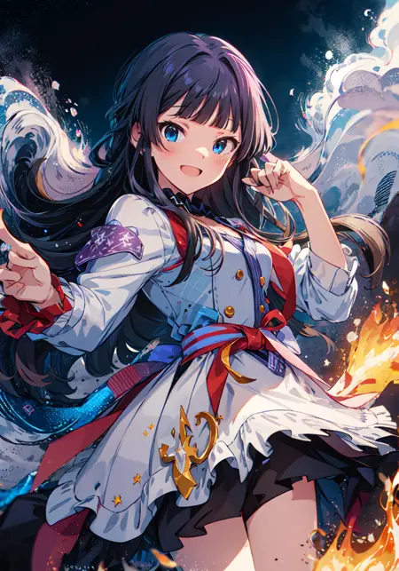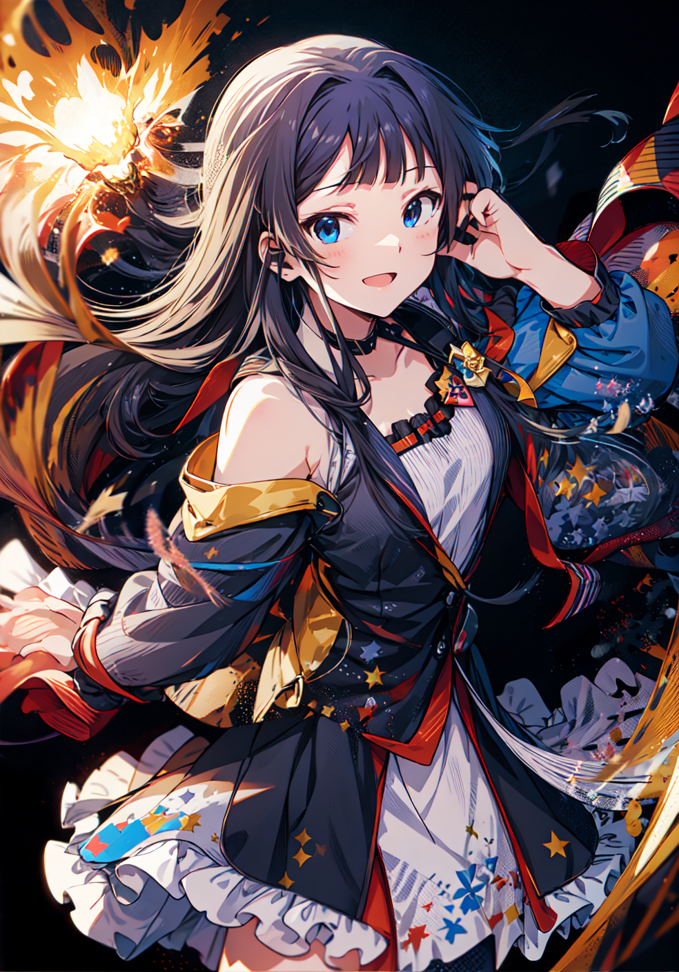 示例图的LoRA权重为0.8,您也可以尝试其他权重值。权重越大,角色风格越接近游戏《偶像大师 百万现场 剧场时光》(MLTD)游戏卡面以及该游戏发行后新绘制的立绘