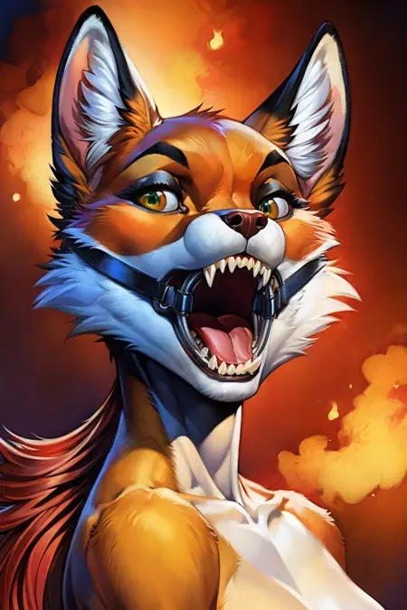 A strength of 0.6 or 0.7 seemed to work best. Use ring_gag as trigger, a few other things like drool, saliva, tongue out can affect the results as well. Trained on Yiffymix 21