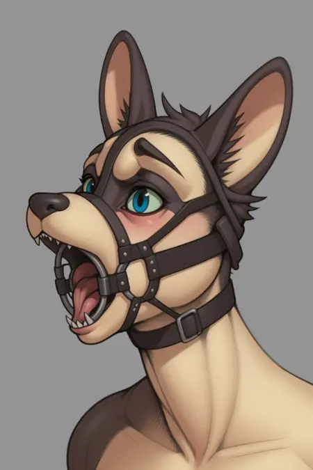 A strength of 0.6 or 0.7 seemed to work best. Use ring_gag as trigger, a few other things like drool, saliva, tongue out can affect the results as well. Trained on Yiffymix 21