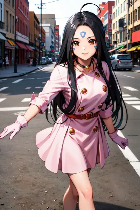 outfit1hmskuld, 黒髪, 顔の模様, 額の模様, アホ毛, 手袋, ジュエリー, ドレス