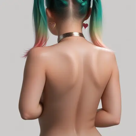 外見: 筋肉質で、自然な自信が周囲の注目を集める。プラチナブロンドの髪にホットピンクのストライプが入り、トレンド感のあるリラックスしたウェーブスタイル。表情豊かで太めのアイラインを引いた目は、深いレッドのリップ、パステルカラーの服、パステルピンクとパープルの遊び心あるアイシャドウで強調されている。両目の下には小さなハートのタトゥーがあり、典型的な「E-Girl」ルックを演出。黒いウィングアイライナーは、明るいpersonaに少しクールな雰囲気を加えている。