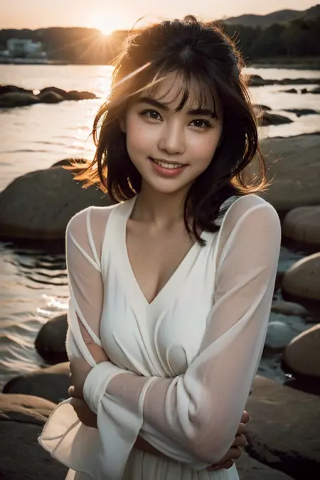 👈Left one, the composition is correct, but the hairstyle, expression, pose, and lighting are all inconsistent with the prompt.