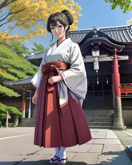 A lora for generating miko outfits. The standard generation is just the general clothing with no frills, but you can get it to add some fancy stuff if you play with prompts like "very detailed clothes".