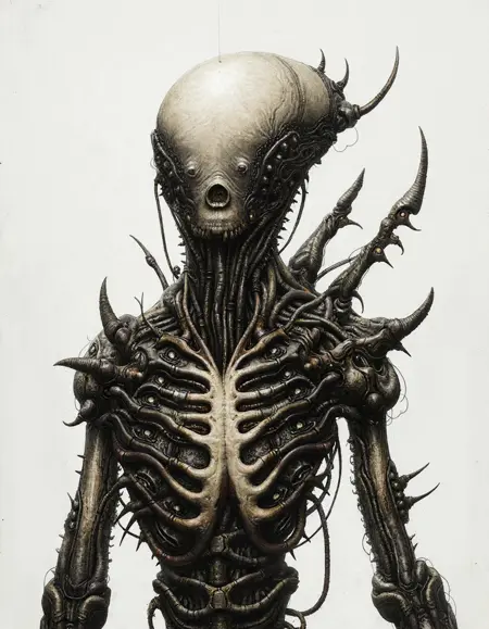 highly detailed surreal drawing, gothic industrial style, steampunk, biomechanical, dark and gritty