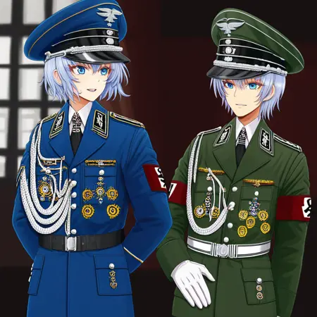 | トレーニングワード | Green military uniform,military, hat, military hat, solo,red arm band コピーしました! Blue military uniform,military, hat, military hat, solo, red arm band コピーしました! necktie, medal,hat ,gloves, solo, military hat, military uniform, red arm band コピーしました! |