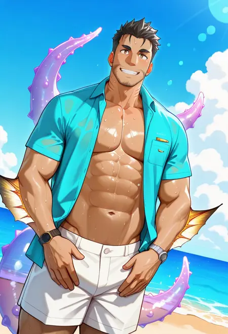 charactertentaclesgaybaramuscularhandsomehomoerotichomosexuallgbtqia+tokyo afterschool summonershousamomuscular malemasculinespeedoswimsuitblack hairbrown eyesyaoigame charactermalemanshort hairdark skinmythologygamecharactersswimwearteachermature malecthulhu mythoshunktogamale charactermuscular manstubblefinsathletic bodybriefdagon