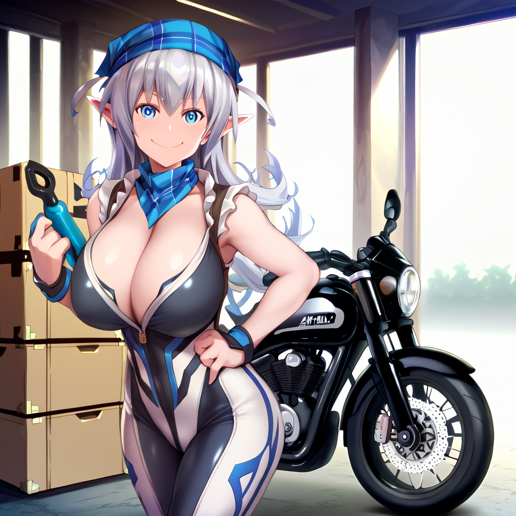MiriTai,长发,银发,蓝眼睛,尖耳朵,大胸部,獠牙,