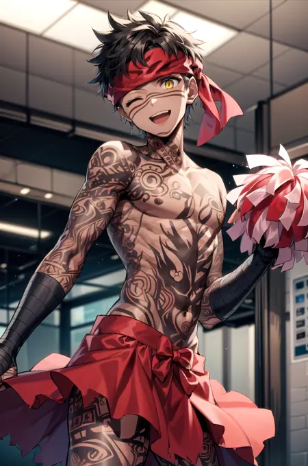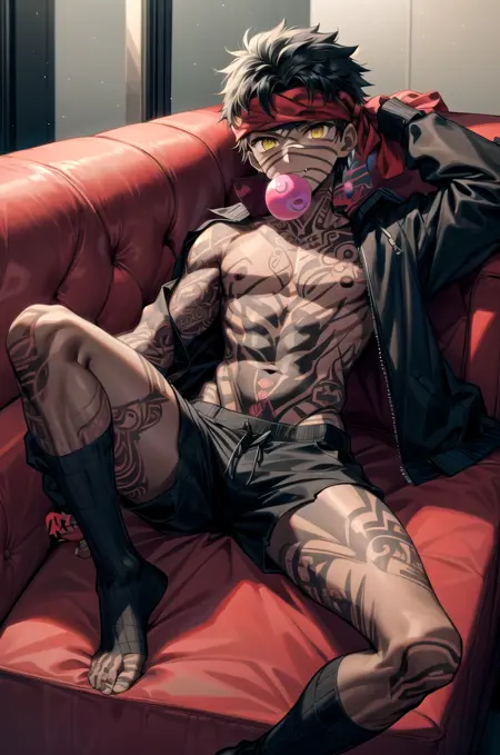 これは比較的シンプルで、通常の衣装だけを意識しました。使用するプロンプトは angra mainyu, bandana, bandages, waist cloth です。正直、それより少ないキーワードでも十分だと思います。なぜなら、データセット全体が同じ衣装だったので、モデルがやや混ざり合ってしまったからです。悪い知らせとしては、彼の顔のタトゥーが消え始める可能性があるため、まったく異なる衣装を試すのは避けてください。少なくともバンダナはつけたままにすることをお勧めします。