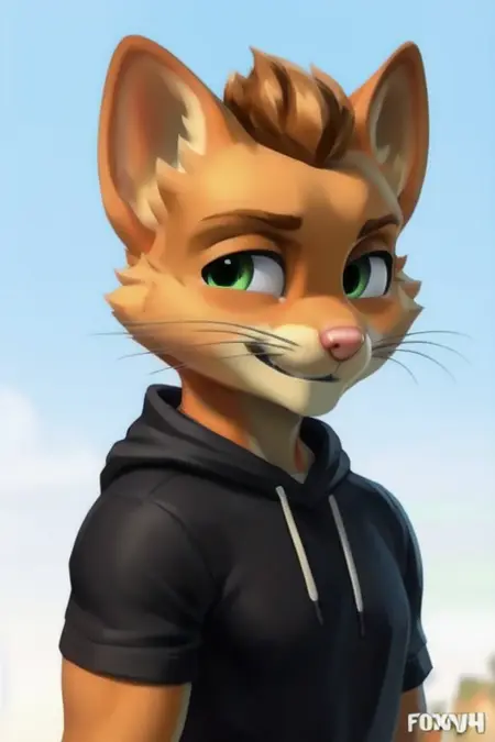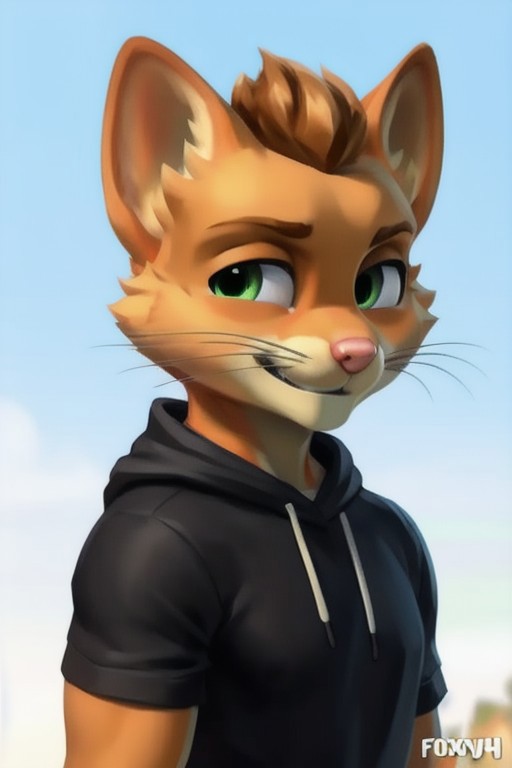 强化提示:" domestic cat, male, green eyes, orange fur, cream body"