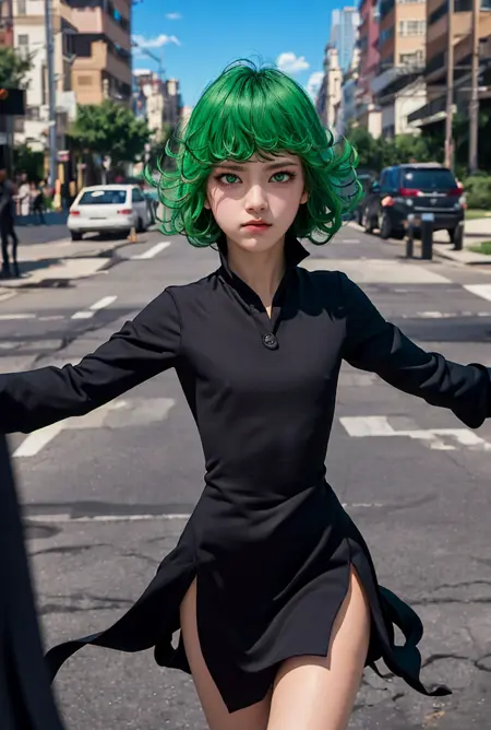 ✦ 主要触发词为 tatsumaki, black dress, long sleeve, green hair, green eyes,