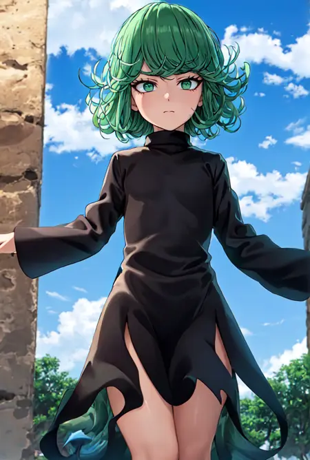 ✦ 주요 키워드는 tatsumaki, black dress, long sleeve, green hair, green eyes,입니다.
