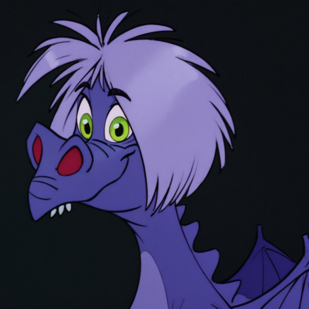 Madam Mim in her dragon form from the Disney movie The Sword in the Stone. I didn't have much to work with, so please keep that in mind when generating this LORA. The teeth are a bit inconsistent, but other than that, it works perfect.